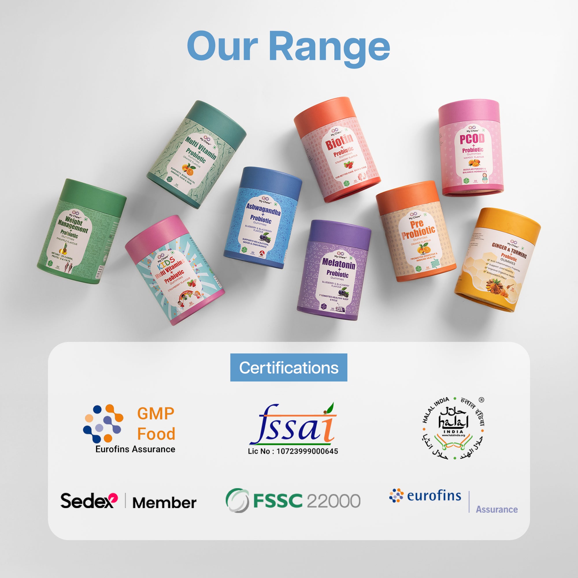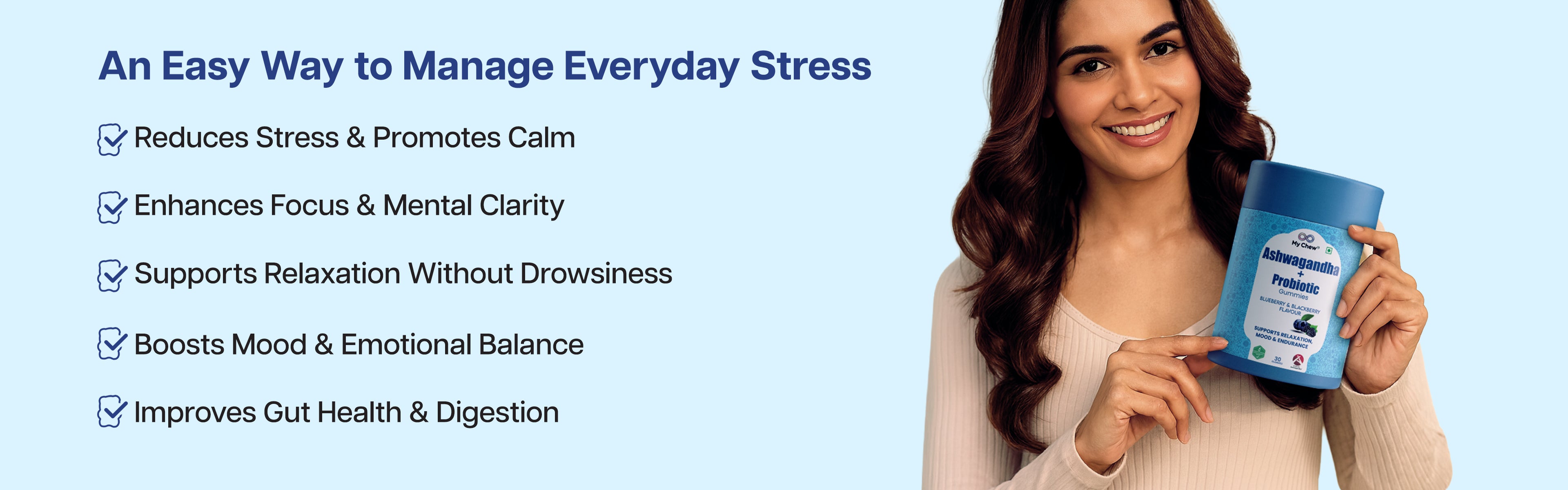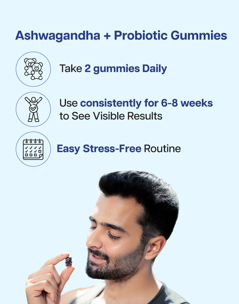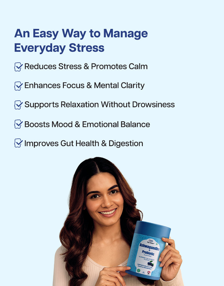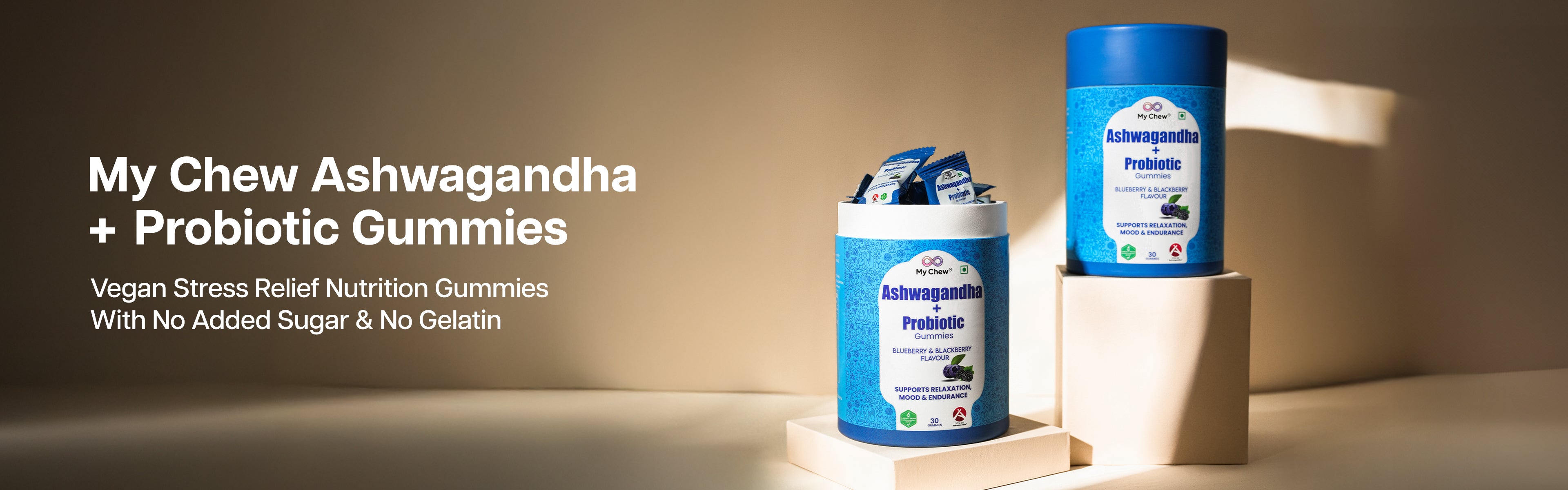 Berry-flavored gummies combining Ashwagandha, Vitamin D3, and BCP92™ probiotics to promote calm, cognitive clarity, and immune support.