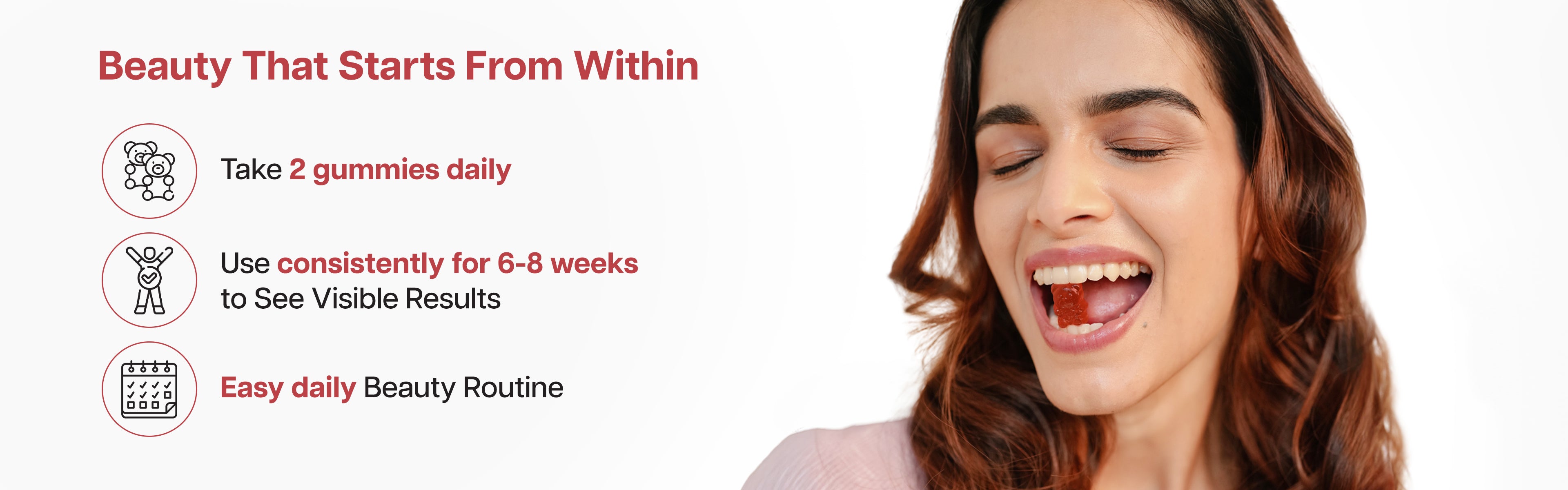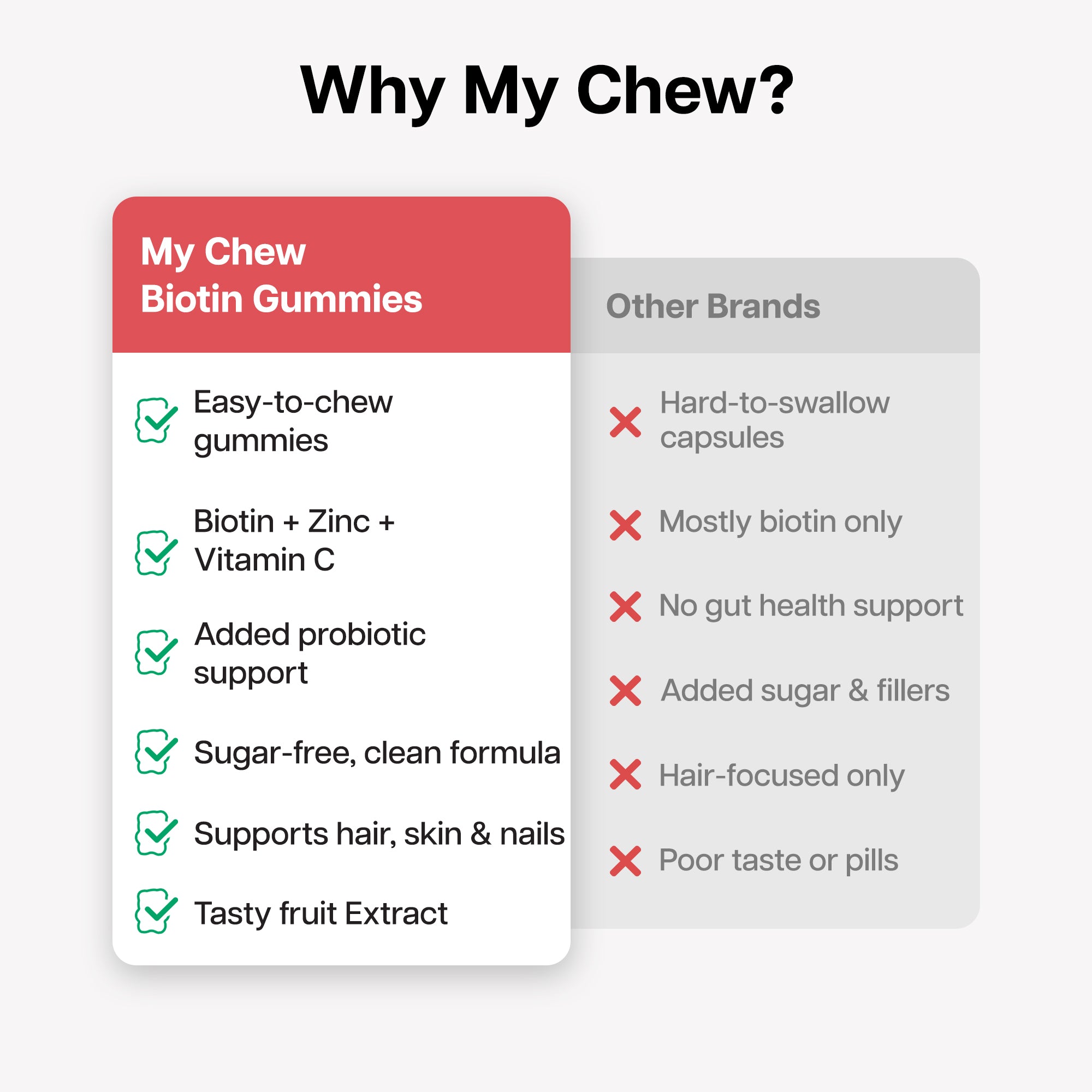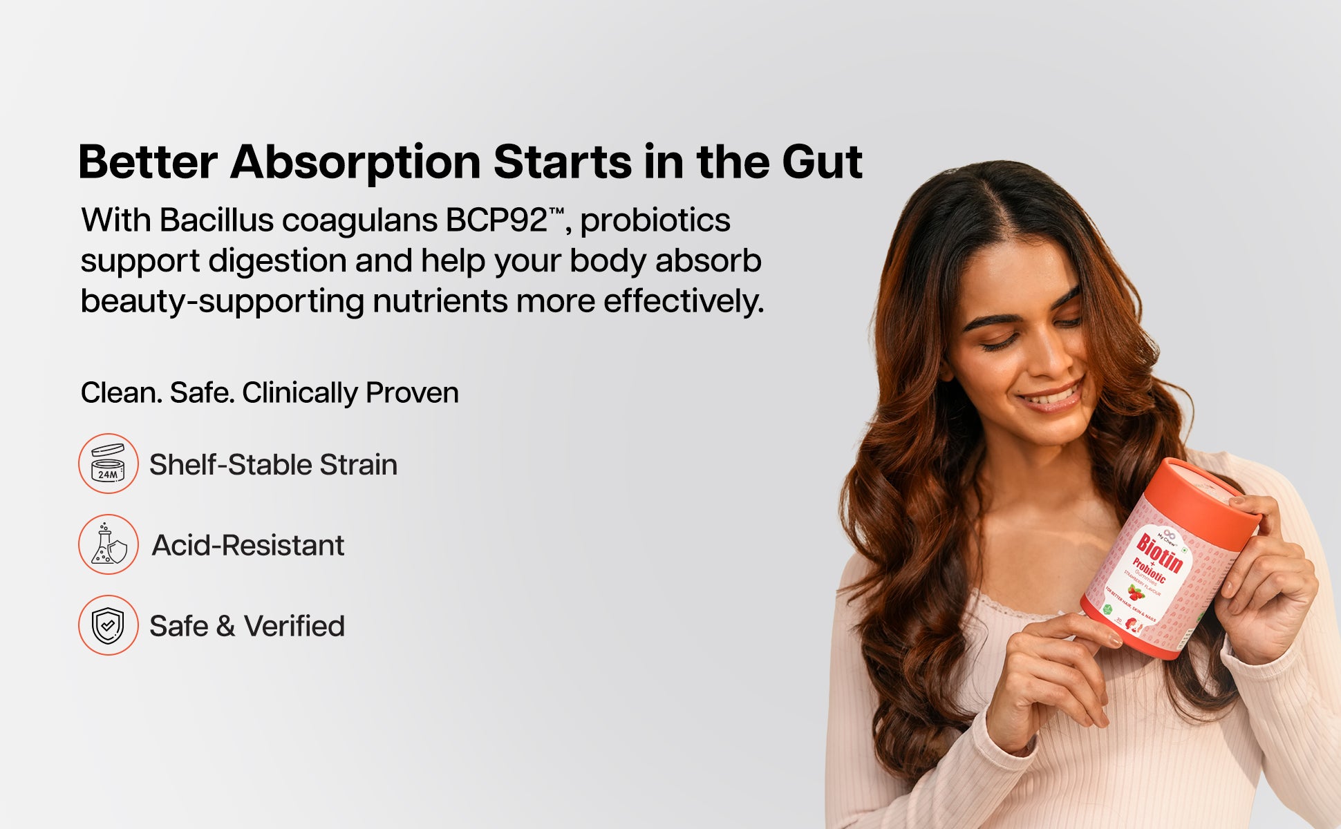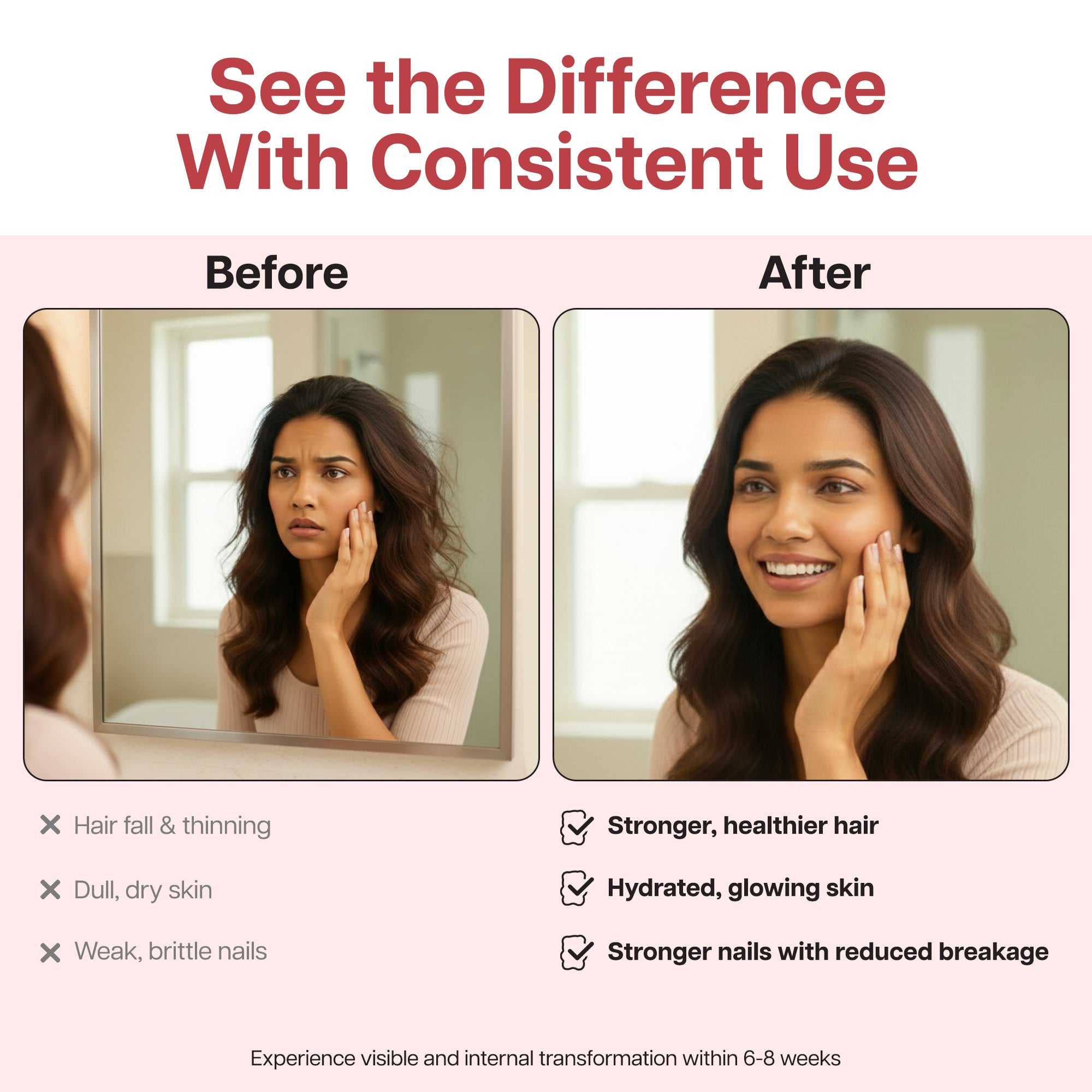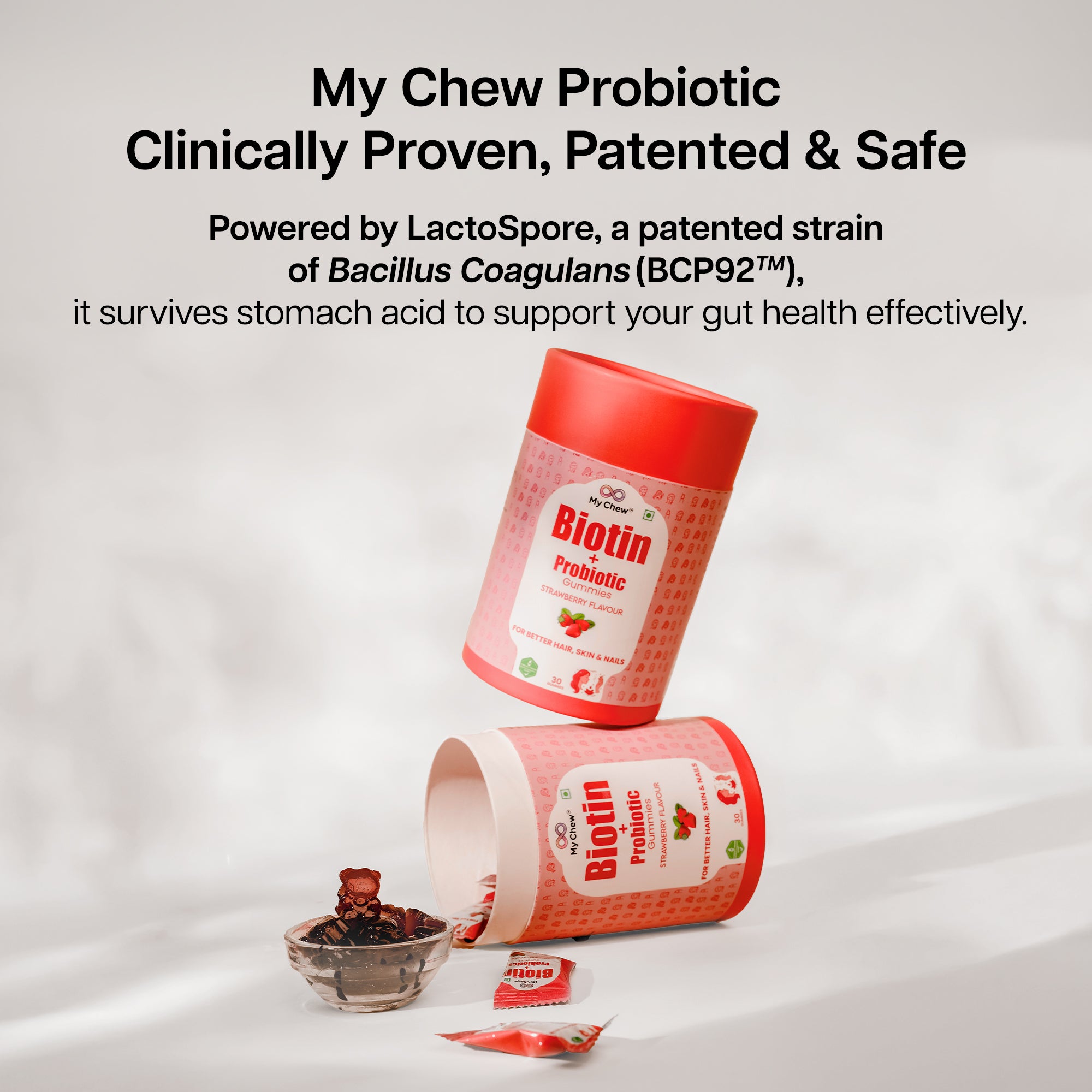Delicious gummies enriched with Biotin, Hyaluronic Acid, essential vitamins, and probiotics to support natural beauty, gut health, and overall wellness.