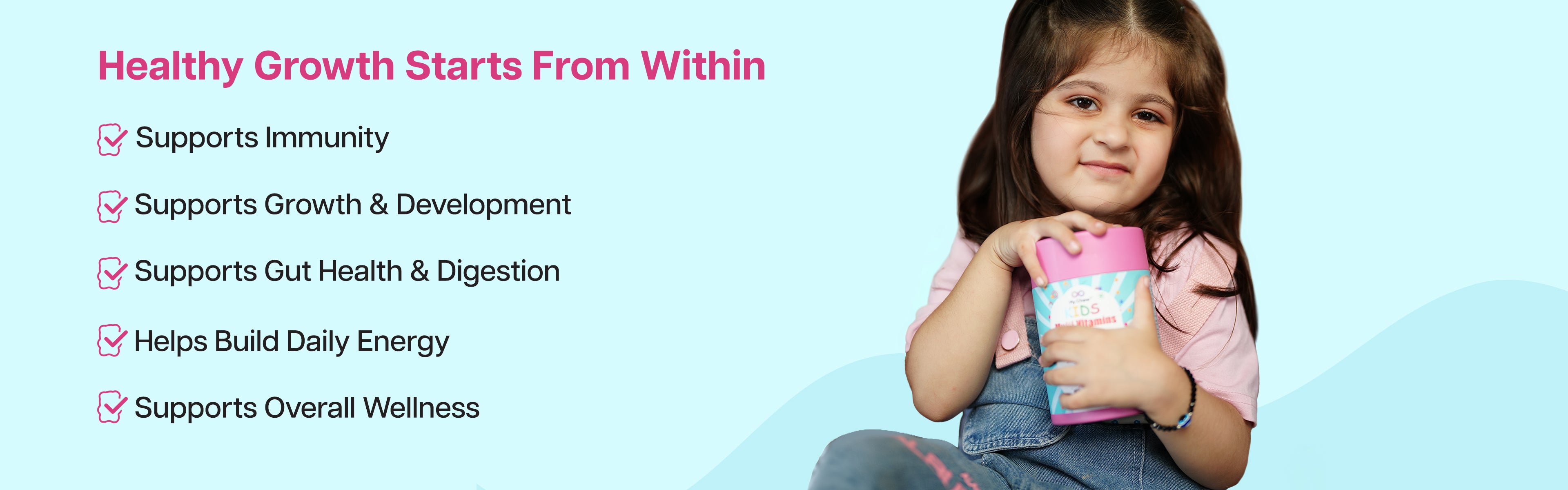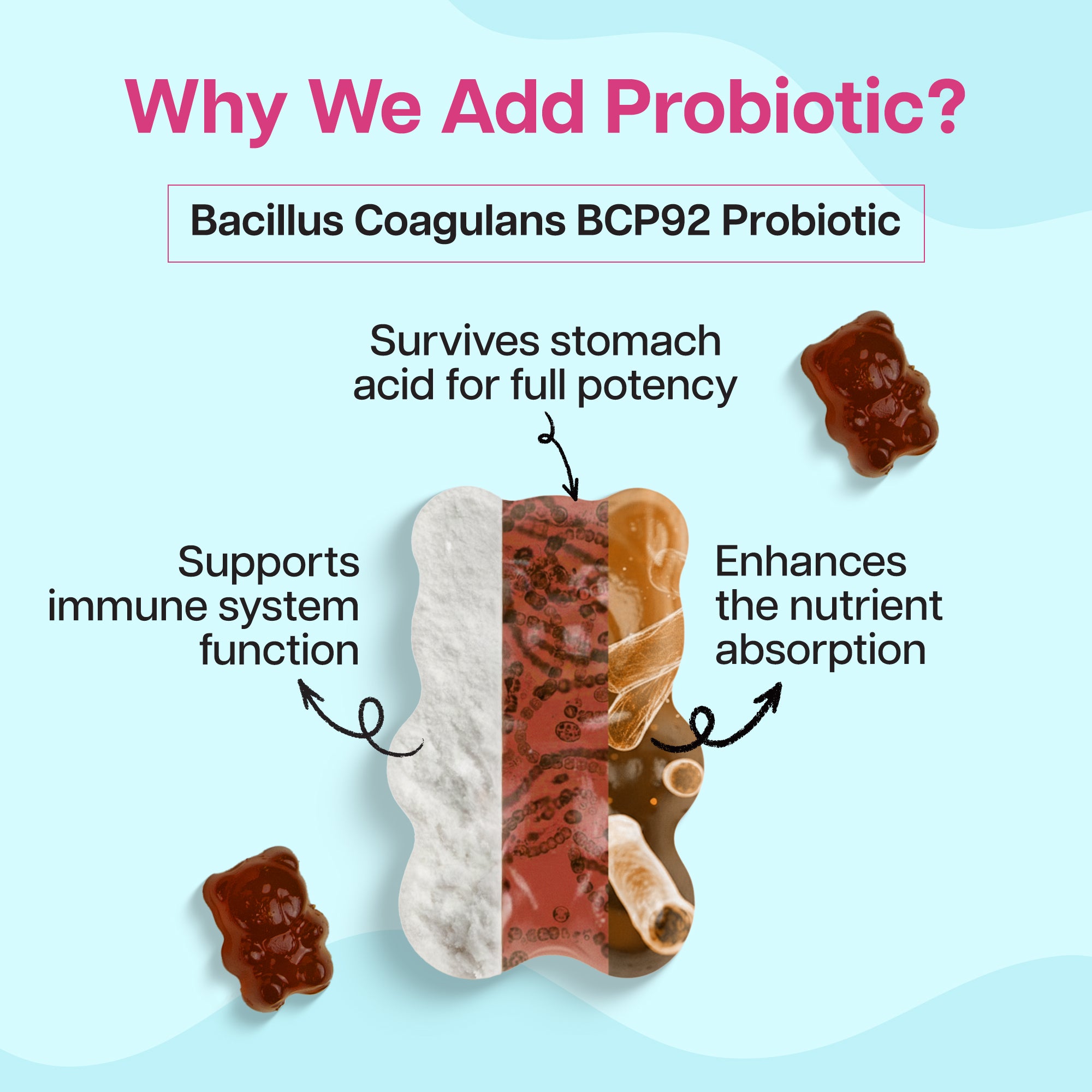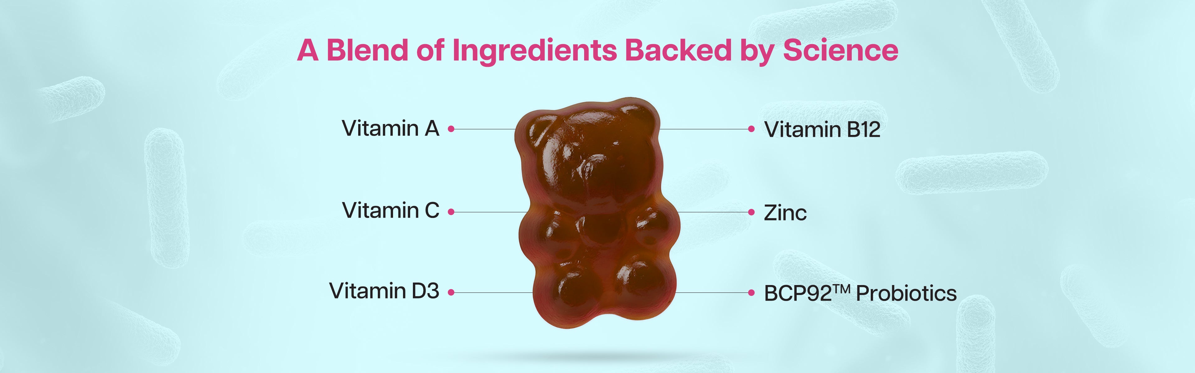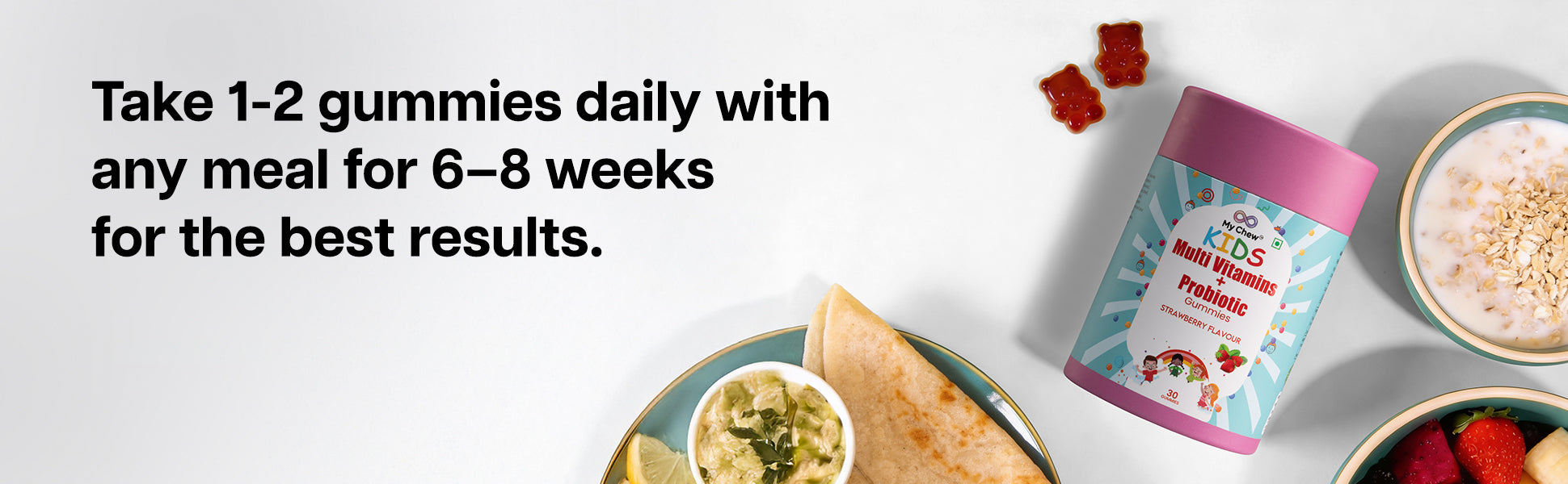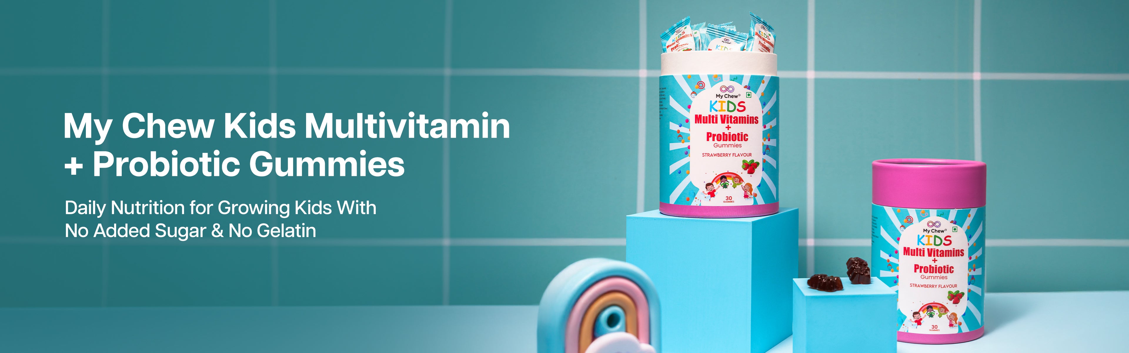 A delicious, fruit-flavored multivitamin gummy for kids, packed with essential vitamins, minerals, probiotics, and herbs to support healthy growth, immunity, and cognitive development.
