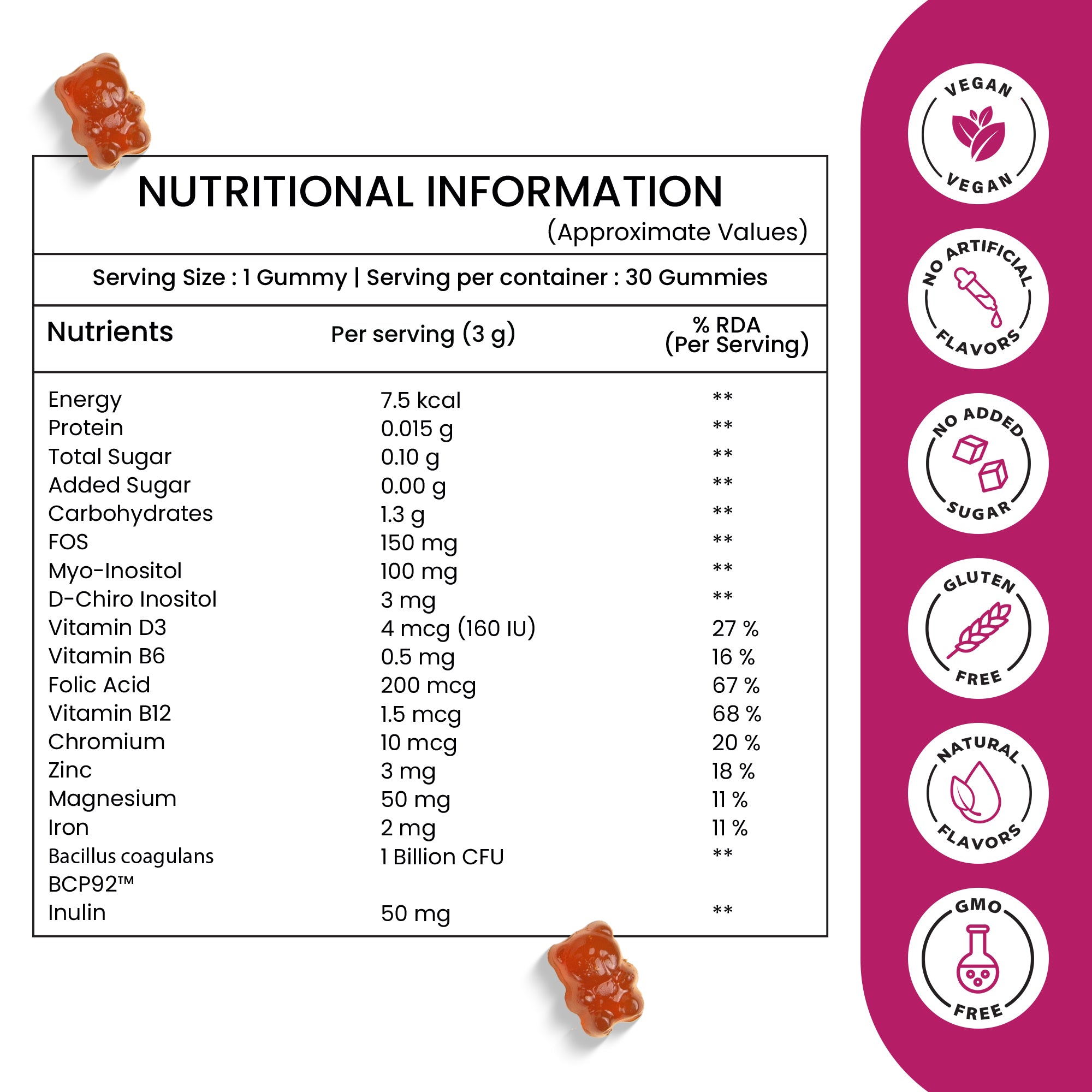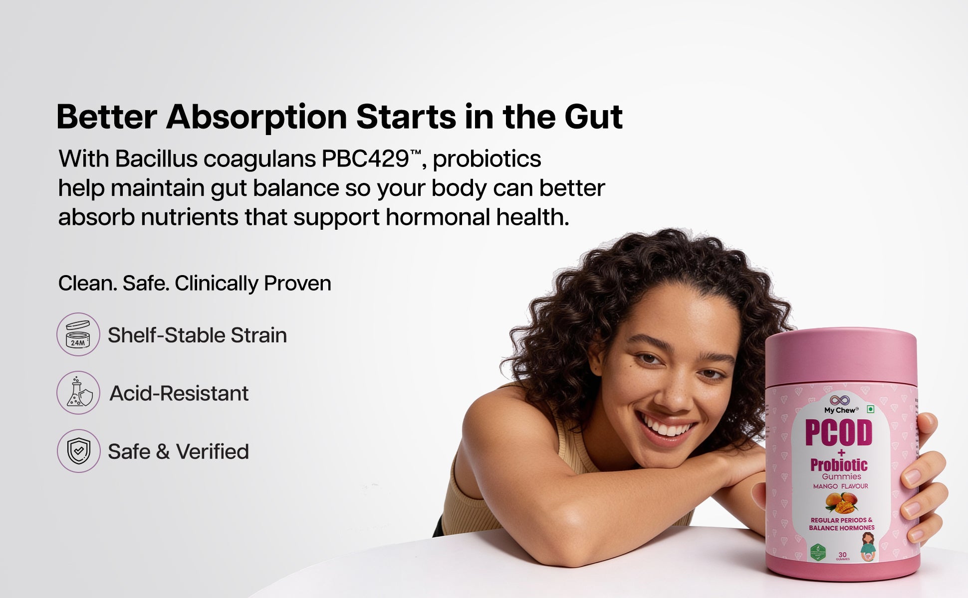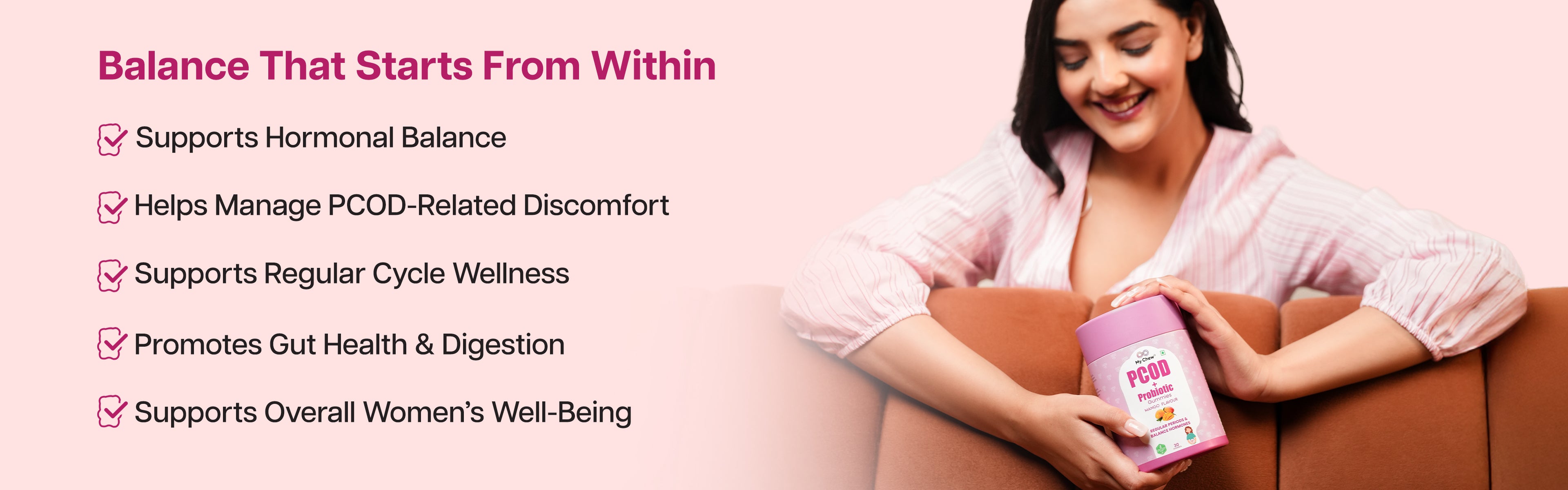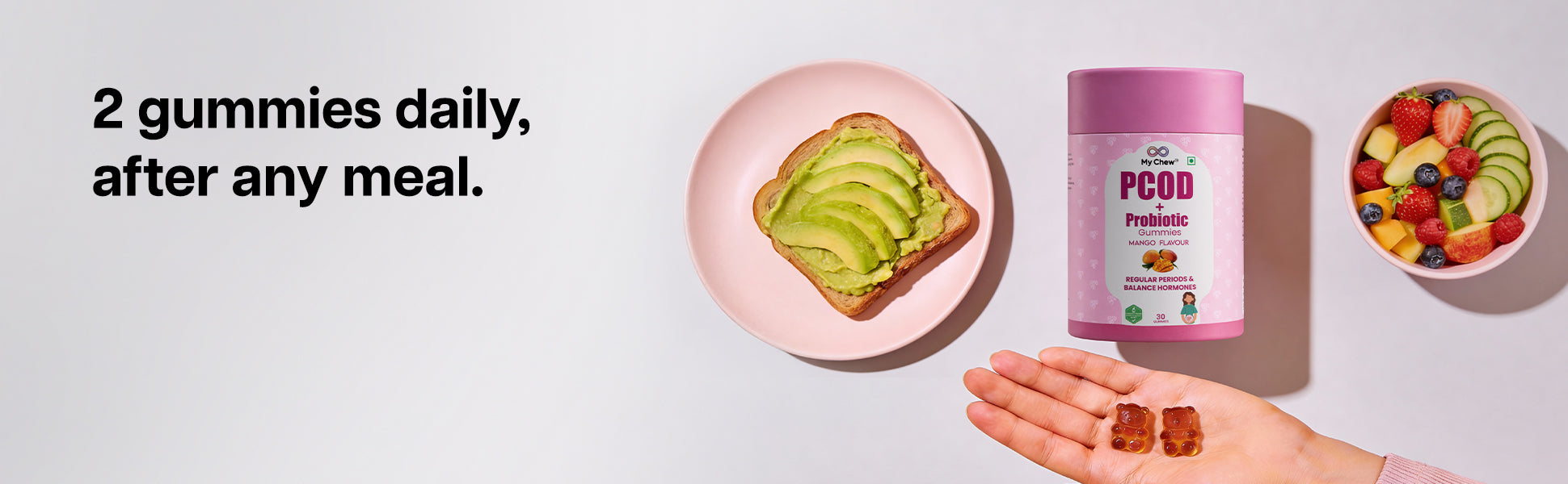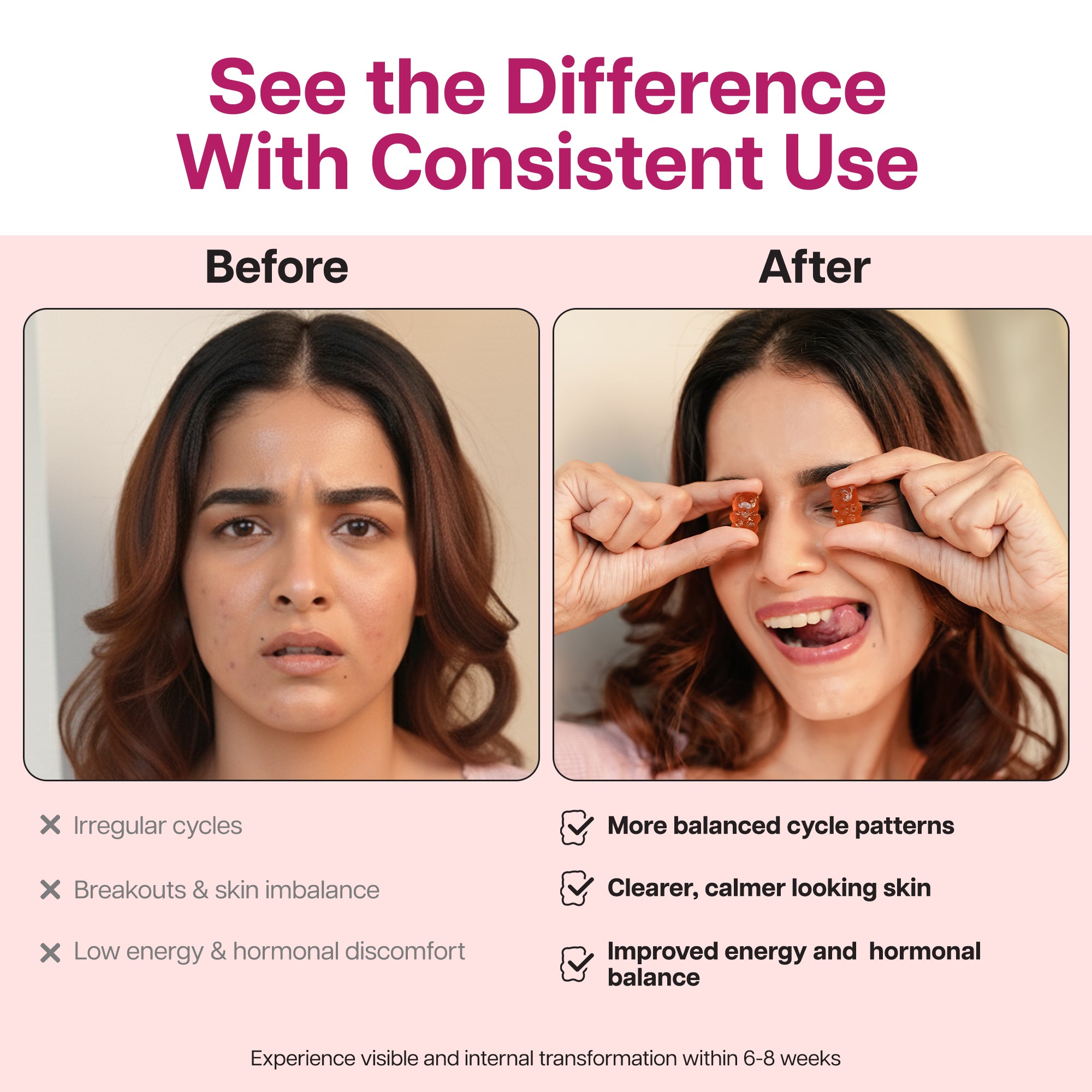 A natural, delicious gummy designed to regulate menstrual cycles, support ovarian function, and promote overall wellness for women with PCOD.